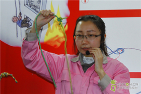 老师讲解绳索打结方法。