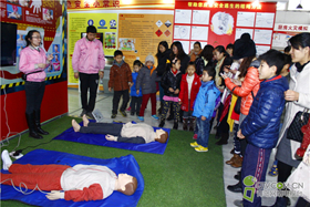 小朋友在现场学习消防标志。