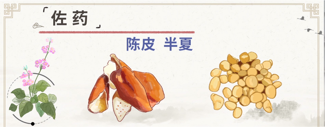 陈皮、半夏,燥湿和胃,降逆止呕,可以帮助缓解呕吐、恶心的症状。