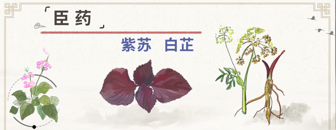 紫苏、白芷,协助君药,在外发散风寒,在内化湿,主要针对暑湿感冒的病因进行治疗。