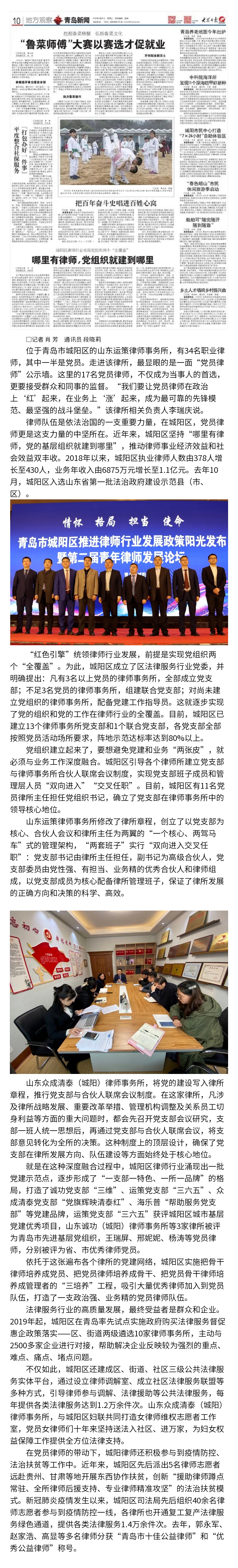 城阳区律师行业实现党组织两个“全覆盖”:哪里有律师,党组织就建到哪里